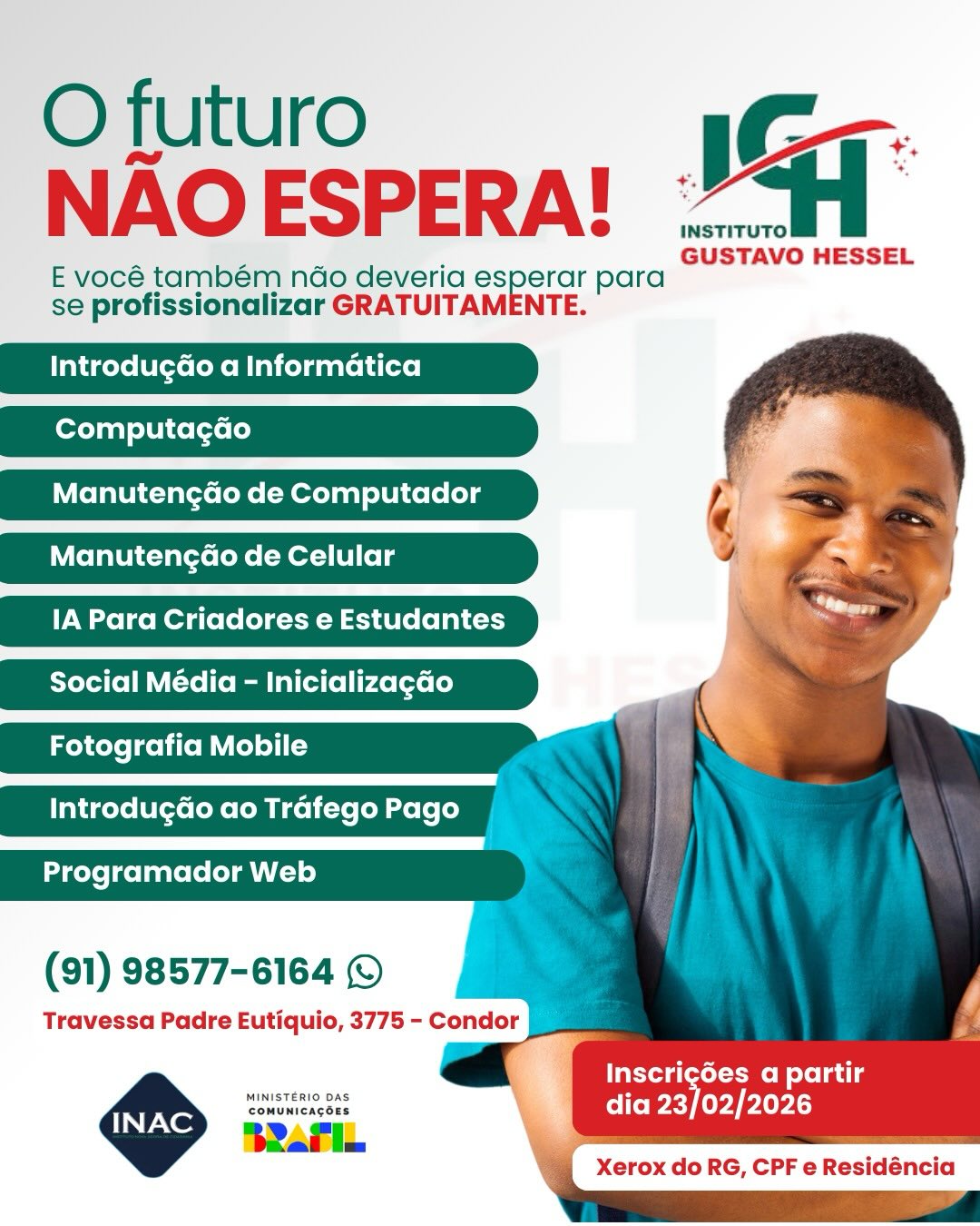 Saiba mais“Faço o curso de Montagem e Manutenção de Computadores e recomendo muito. Muitas máquinas e peças disponíveis pra estudar e praticar com muita liberdade nas aulas, além de ser totalmente gratuito e ter um espaço muito confortável.”